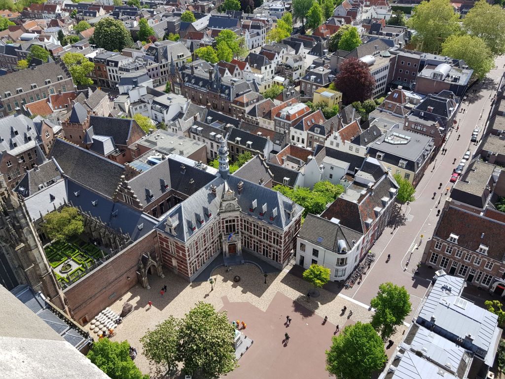 mit knapp 353.000 Einwohnern die 4größte Stadt der Niederlande. Durch Utrecht verläuft der Amsterdan-Rhein-Kanal. Eine tolle Altstadt mit vielen alten Häusern. In der Innenstadt befinden sich zudem Grachten die auch mit Schiffen befahren werden. An der Grachten befinden sich diverse Restaurants. Wer will findet auch viele, viele Geschäfte zum Einkaufen. Der Utrechter Dom (St. Martinus) war bis 1580 Domkirche des Bistums Utrecht und dient heute als evangelisch-reformierte Kirche. Bei einem schweren Sturm im Jahr 1674, wurde das Langhaus zerstört. Seitdem besteht die Kirche nur noch aus Chor, Querschiff und Turm (Domtoren), dem mit 112 Metern höchsten Kirchturm der Niederlande. Der Turm kann – mit Führung – bestiegen werden. Über 465 Stufen gelangt man auf eine Höhe von 95 Meter. Dabei kommt man durch den Glockenbereich – 14 Glocken. Im Turm befindet sich zudem ein Carillon, das samstags von 11.00 bis 12.00 vom Glockenspieler der Stadt bespielt wird. Hier spielte auch schon David Bowie. Von oben hat man einen tollen Überblick über die Stadt.
