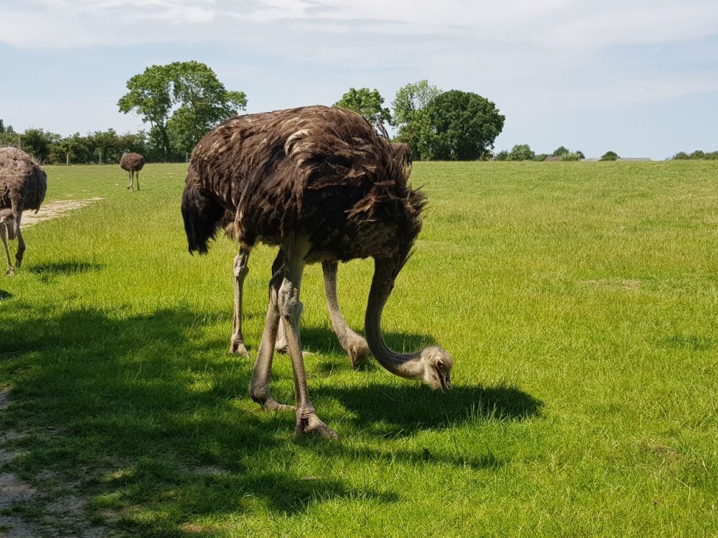 Weiter Richtung Osten. Unterwegs in 24257 Hohenfelde entdecken wir ein Hinweisschild zu einer Straußenfarm. Wir halten an und besuchen diese. Nett gemacht. Strauße in allen Größen. Vom Ei bis zum Erwachsenen – fast 400 Stück. Und schmecken tun die auch 🙂