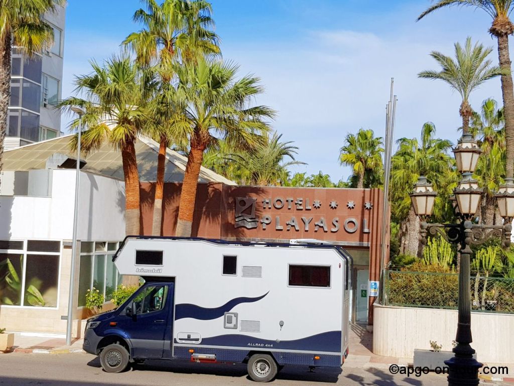 von den weißen Dörfern fuhren wir wieder ans Meer. Zunächst nach ALMERIA. Dort haben wir vor vielen Jahren einen Hotel-/Strandurlaub verbracht der uns in guter Erinnerung geblieben ist. U.a. habe ich dort das Tauchen gelernt – war eine tolle Zeit. Das Hotel gibt es tatsächlich noch, wir haben es gefunden. Es war allerdings – wie viele andere Hotels dort auch – geschlossen.