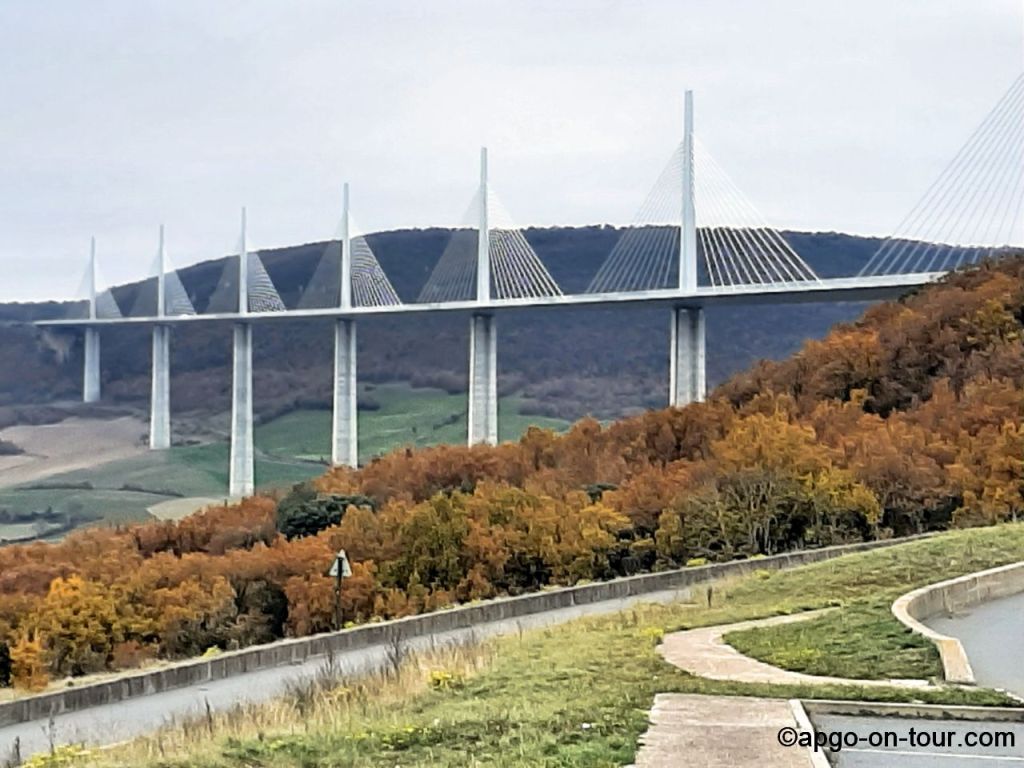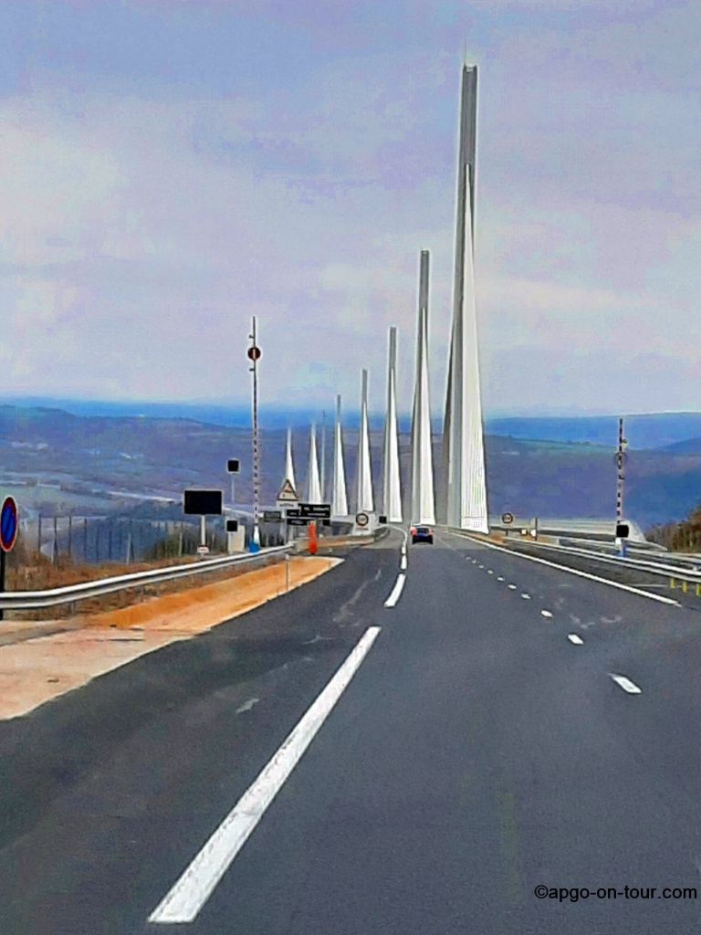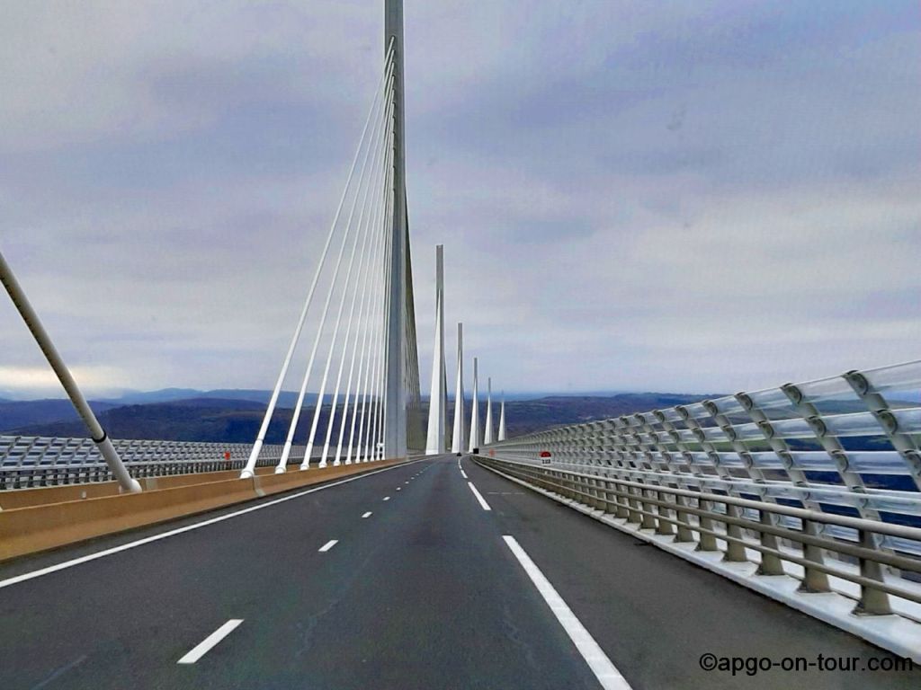 über das Viadukt von MILLAU – das Viadukt ist mit 2460 m die längste Schrägseilbrücke der Welt und bei einer maximalen Pfeilerhöhe von 343 m das höchste Bauwerk Frankreichs