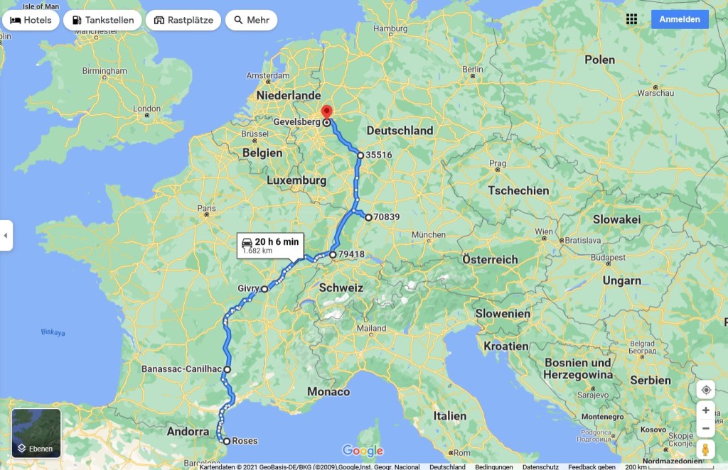 bevor es quer durch Frankreich wieder nach Hause ging