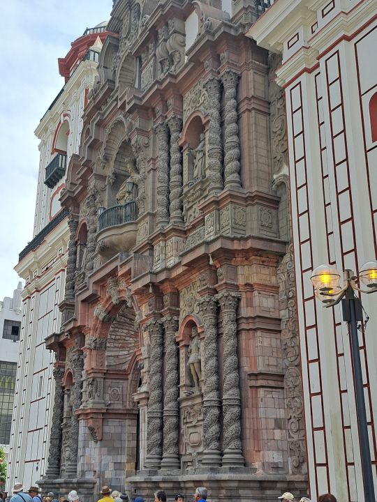 Wir fahren mit Bussen zur Stadtbesichtigung von Lima – Hauptstadt von Peru – Sehr ausführlich. Wir besichtigen die Altstadt mit Regierungsviertel. Es gibt viele Kirchen, eine Kathedrale. Viele Kolonialbauten aus der spanischen Besatzungszeit. Es gibt Geschäfte von weltweit vertretenen Firmen. Man erkennt aber auch, dass man noch viel an diesen Bauten tun muss / könnte. Wir sehen die Wachablösung am Präsidentinnen Palast.