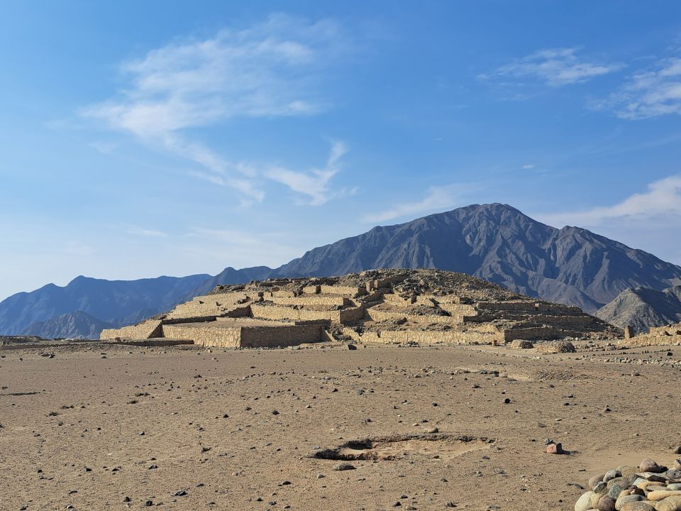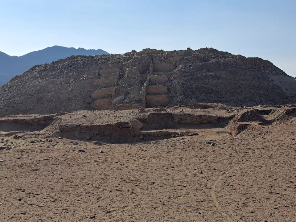 Der Tempel des Mondes ist eine Pyramide aus luftgetrockneten Lehmziegeln im Moche-Tal am Fuße des Cerro Blanco. Sie ist kleiner als die gegenüber liegende Sonnenpyramide (Hueca del Sol).