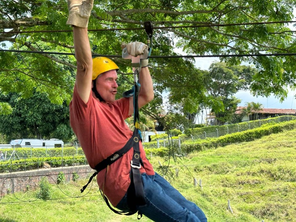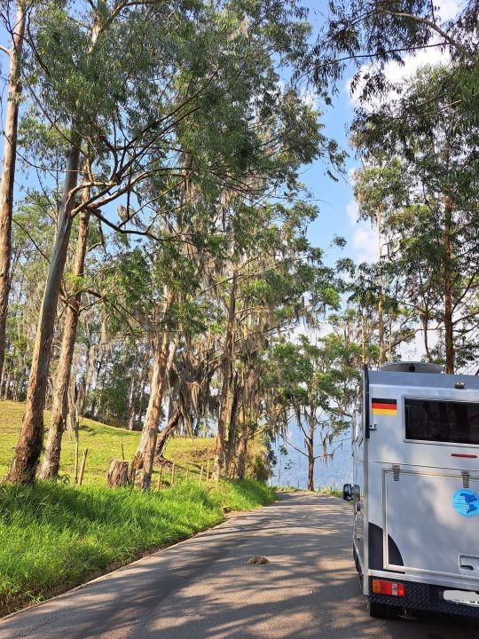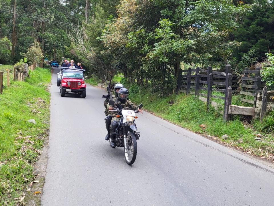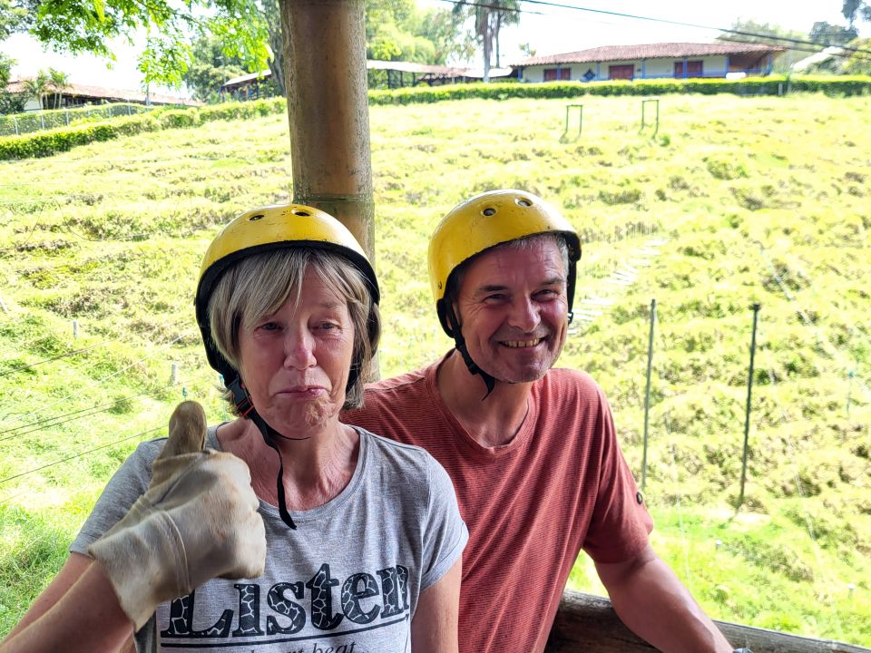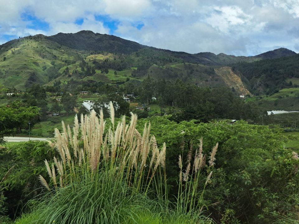 Eine lange Fahrt durch das grüne Kolumbien, bergauf, bergab, viele Kurven, enge Straßen. Wir fahren wie vom Roadbook angegeben, kommen auf Grund einiger Großbaustellen in Staus… nehmen dann aber wohl eine Ausfahrt zu früh – folgen unserem Navi. Fahren über enge, etwas zugewachsene Straßen den Berg hoch. Kommen durch kleine, enge Dörfer. Das Ganze dauert. Aber auch wir kommen irgendwann an 😊