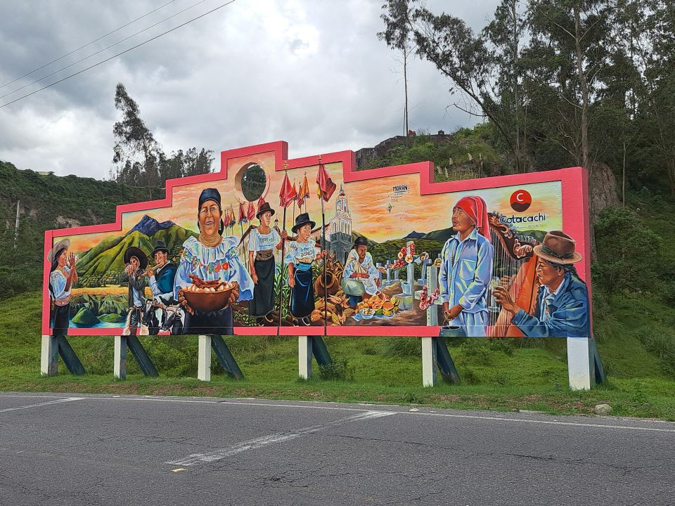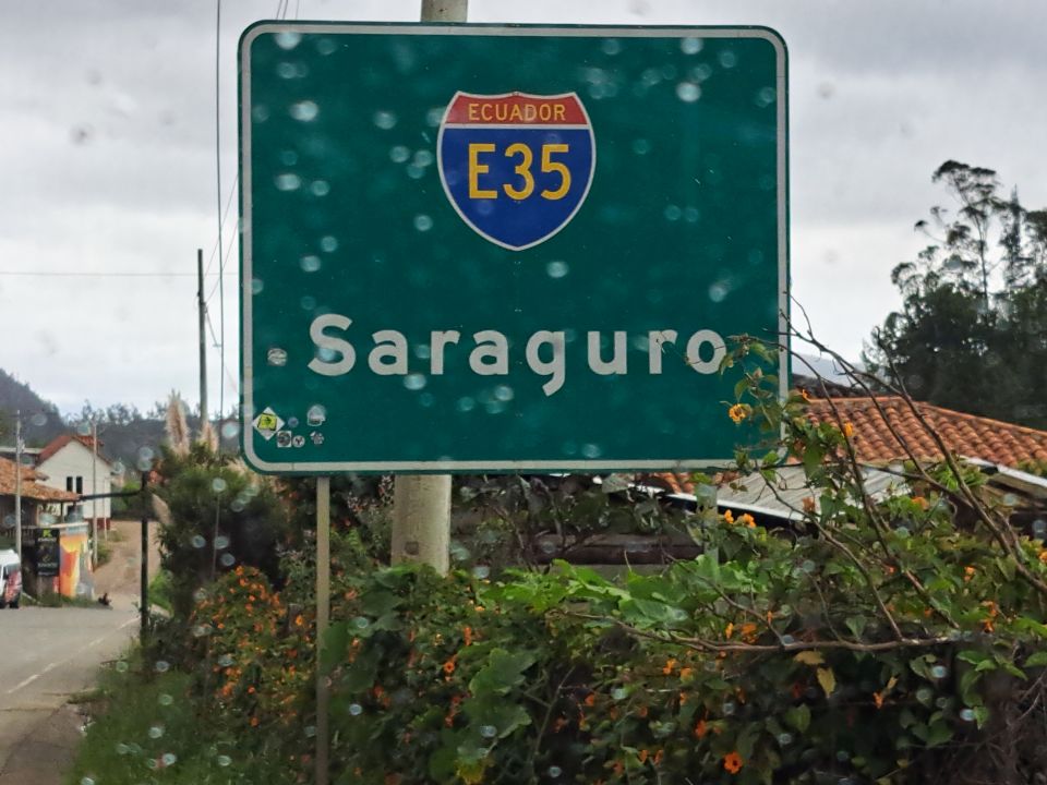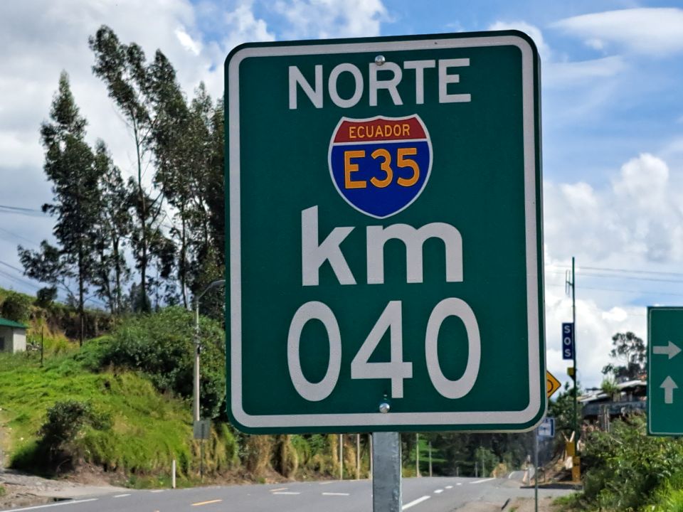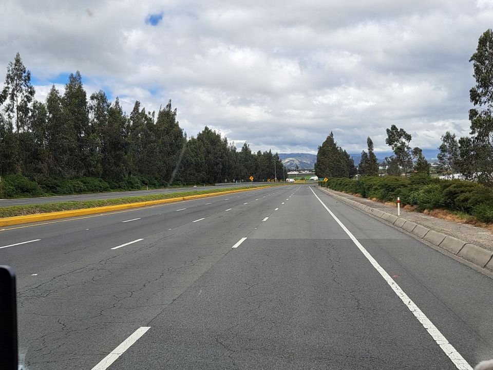 Wir fahren die vorgegebene Strecke, Umgehung von Quito, auf der E 35. Teilweise handelt es sich um eine 3spurige Autobahn, gut ausgebaut. Aber der Unterschied hier: zwischendurch gibt es Ampeln, sogar Zebrastreifen. Busse die plötzlich anhalten und Fahrgäste aufnehmen.