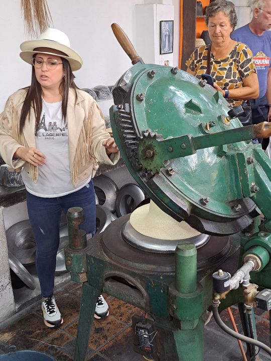 Wir bleiben in CUENCA. Nachdem uns der deutsche Honorarkonsul begrüßt hat – er hat uns diesen Übernachtungsplatz „besorgt“ – gehen wir zusammen in die Stadt und besuchen das Hutmuseum. Uns wird u.a. gezeigt, wie hier die Panamahüte hergestellt werden.