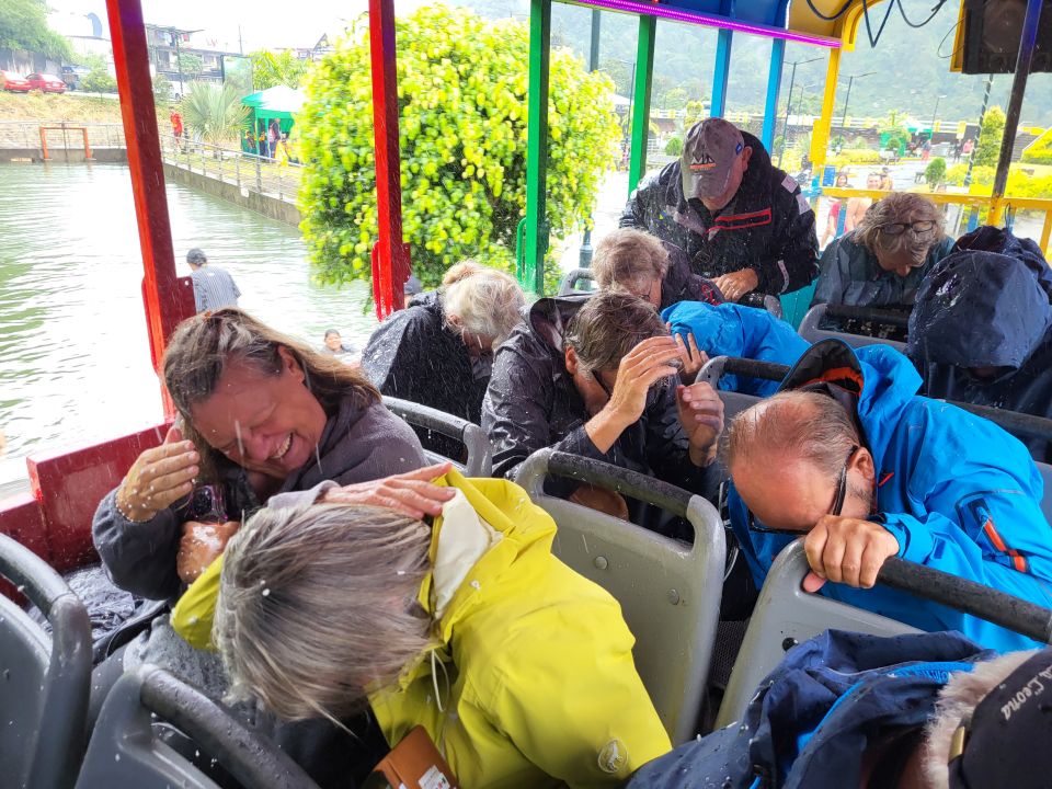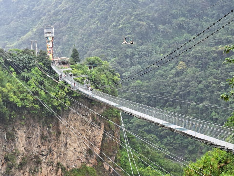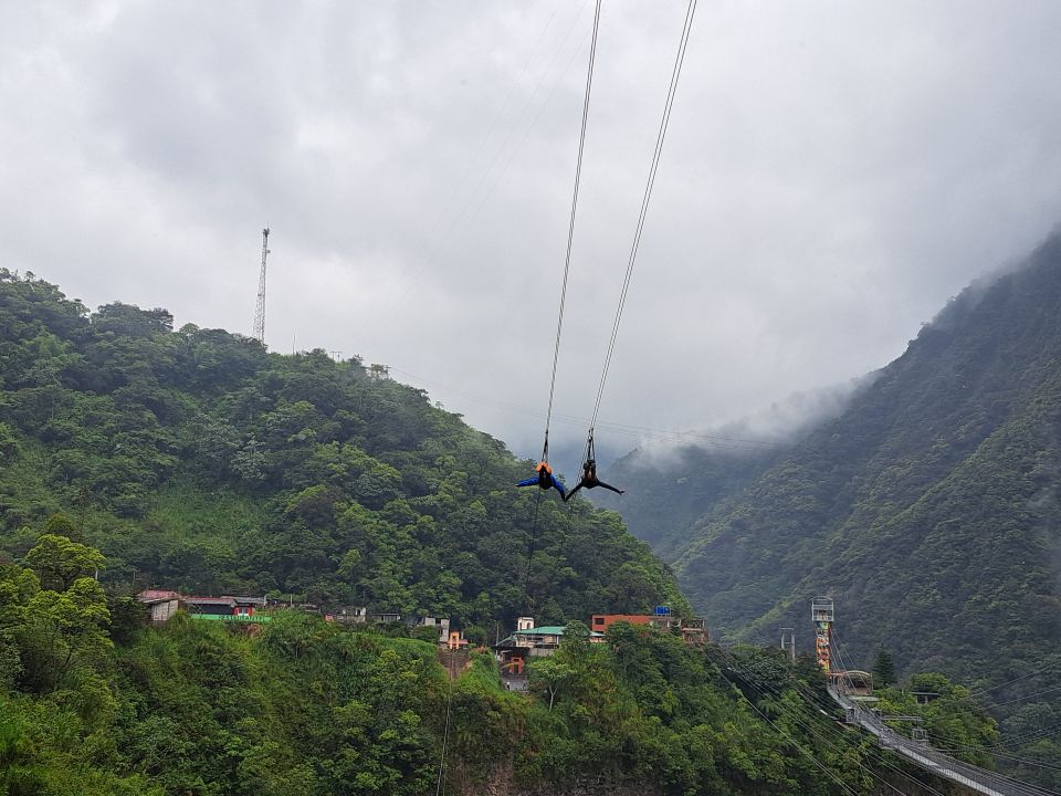 Wir machen eine Fahrt mit einem Chiva-Bus. Durch den Ort und am dortigen Canyon entlang. Einige von uns überqueren den Canyon mit einer Zipline.