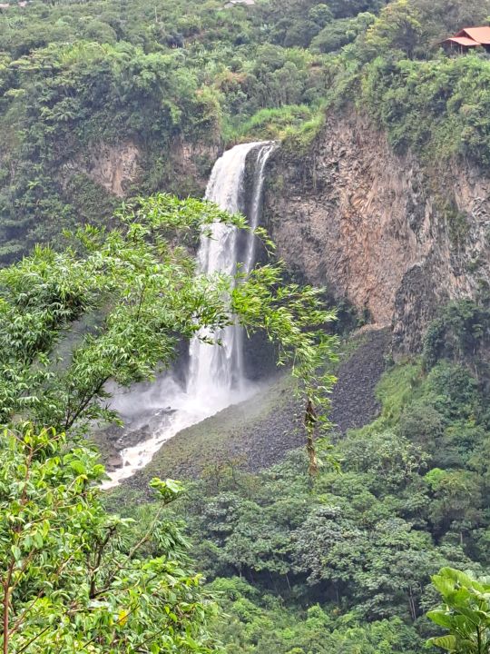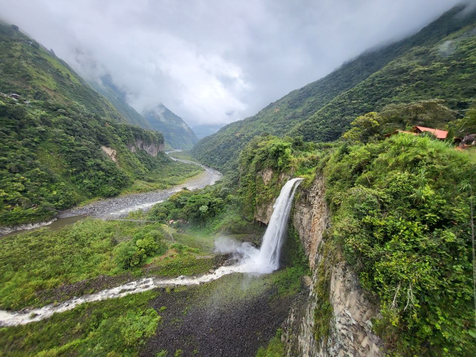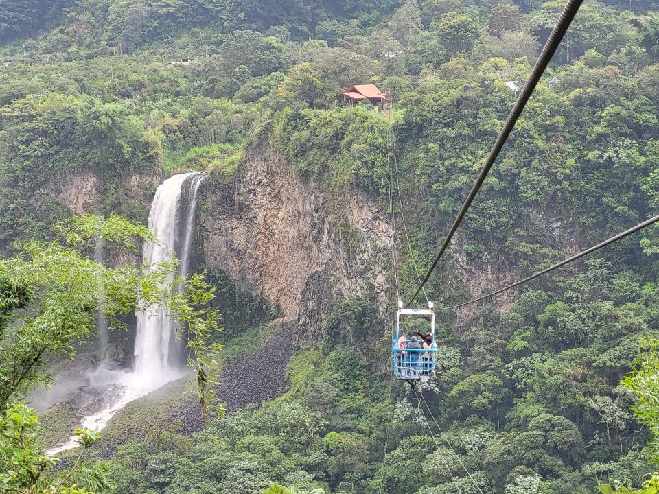 In Baños übernachten wir auf einem Parkplatz am Wasserfall Cascada Cabellera de la Virgin