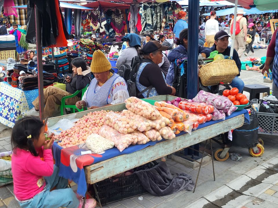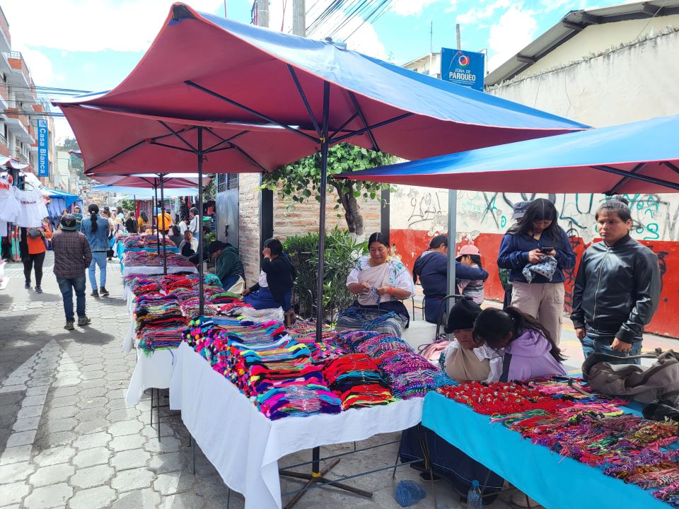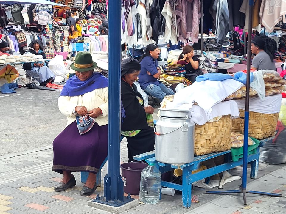 Ein etwas längerer Stopp in Otavalo. Dort besuchen wir den täglich statt findenden „Handwerkermarkt“ auf dem man alles bekommt. Interessant, farbenfroh, voll 😊