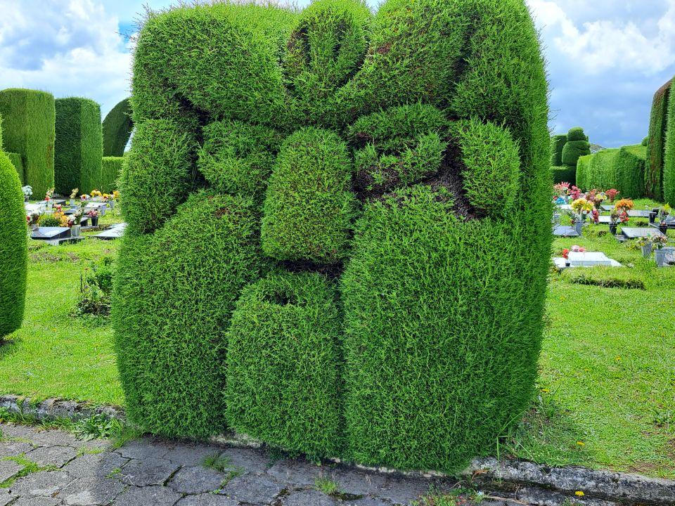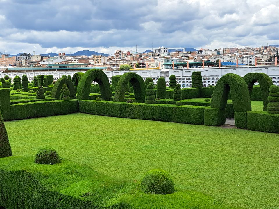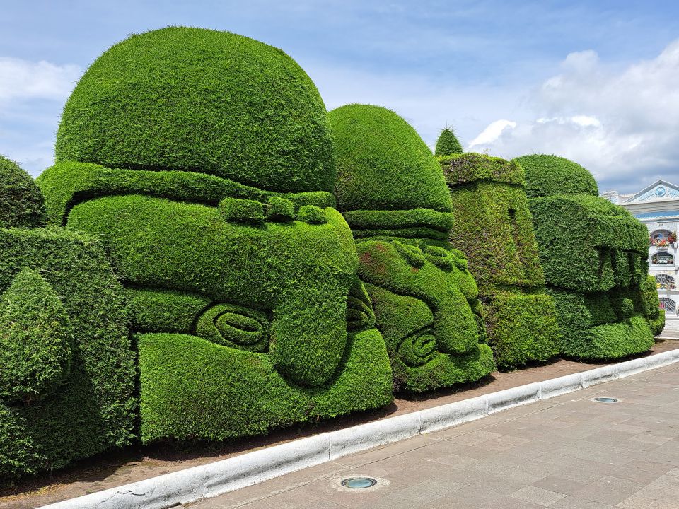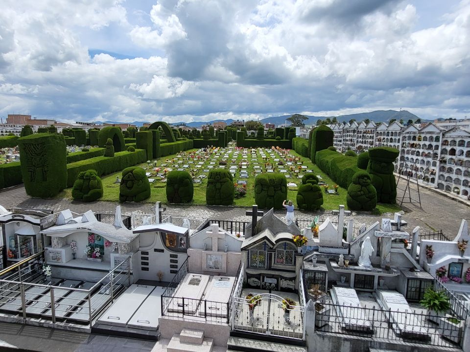 Auf der Fahrt nach Kolumbien kommen wir in ECUADOR durch TULCAN und schauen uns dort Friedhof „Cementario Municipal José Maria Azaél“ an. Der Friedhof ist bekannt für seine kunstvoll geschnittenen Zypressen. Er wurde 1936 angelegt und 1984 zum kulturellen Erbe des Landes ernannt. Die Zypressen-Figuren wurden zum Teil von den Galápagos-Inseln und von den indigenen Völkern des Landes inspiriert. Man findet aber auch griechische, gotische und arabische Elemente.