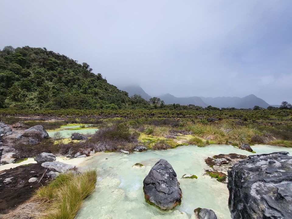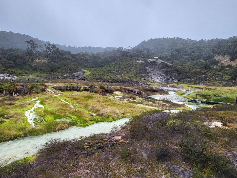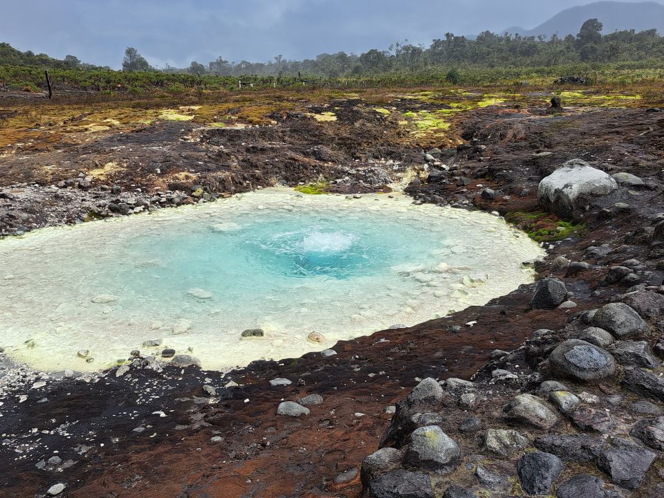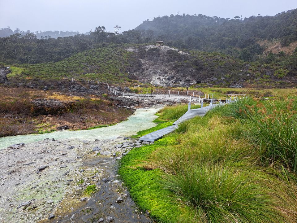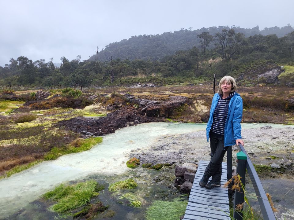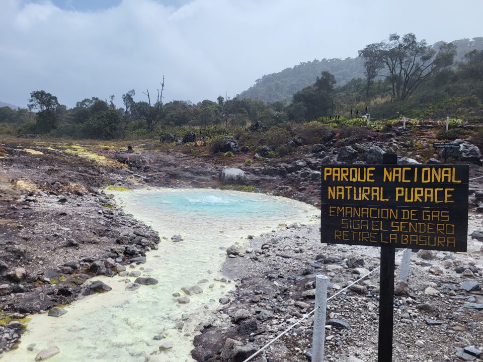 Fahrt zum Nationalpark PURACE. Leider anfangs mit viel Regen. Von einem indigenen Parkranger bekommen wir interessante Erklärungen Der Condorfelsen war leider nicht zu sehen. Wir fahren trotzdem weiter zu den dortigen heißen Quellen. Das Wetter bessert sich (es hört auf zu regnen 😊) Schön