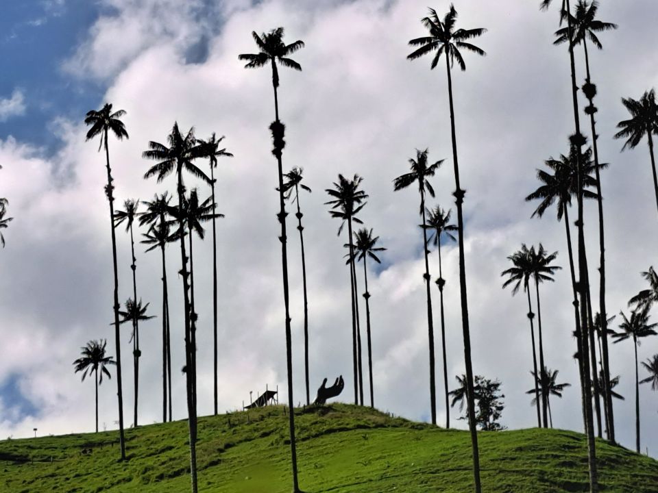 Wir werden morgens von 4 Willys abgeholt. Das sind Jeeps, die hinten auf der offenen Ladefläche Waren oder Personen transportieren können. Maximal 12 Passagiere – wer soll das hier kontrollieren? Angeblich liegt der Rekord bei 36 Personen. Neben dem Fahrer 2 Sitzplätze, hinten 2 Längsbänke für jeweils 3-4 Personen. Zusätzlich kann man noch hinten auf einer Ablage stehen und sich am Gestänge festhalten. Wir fahren in den Nationalpark Valle Cocora in dem die so genannten Wachspalmen – wachsen. Bis zu 60 Meter hoch. Sie können mehrere hundert Jahre alt werden.