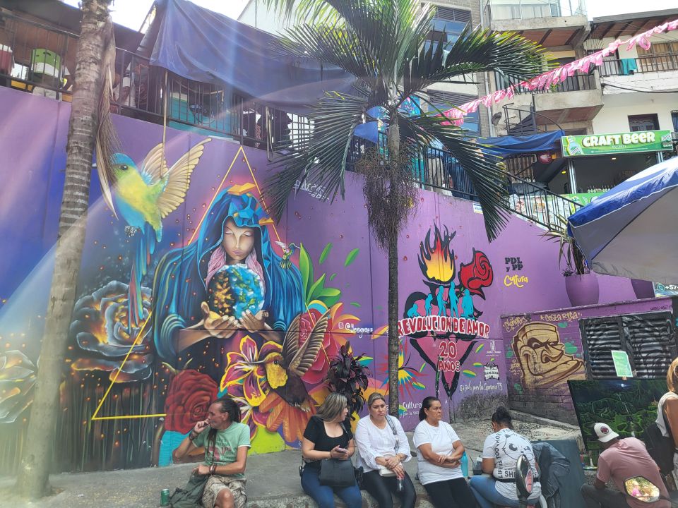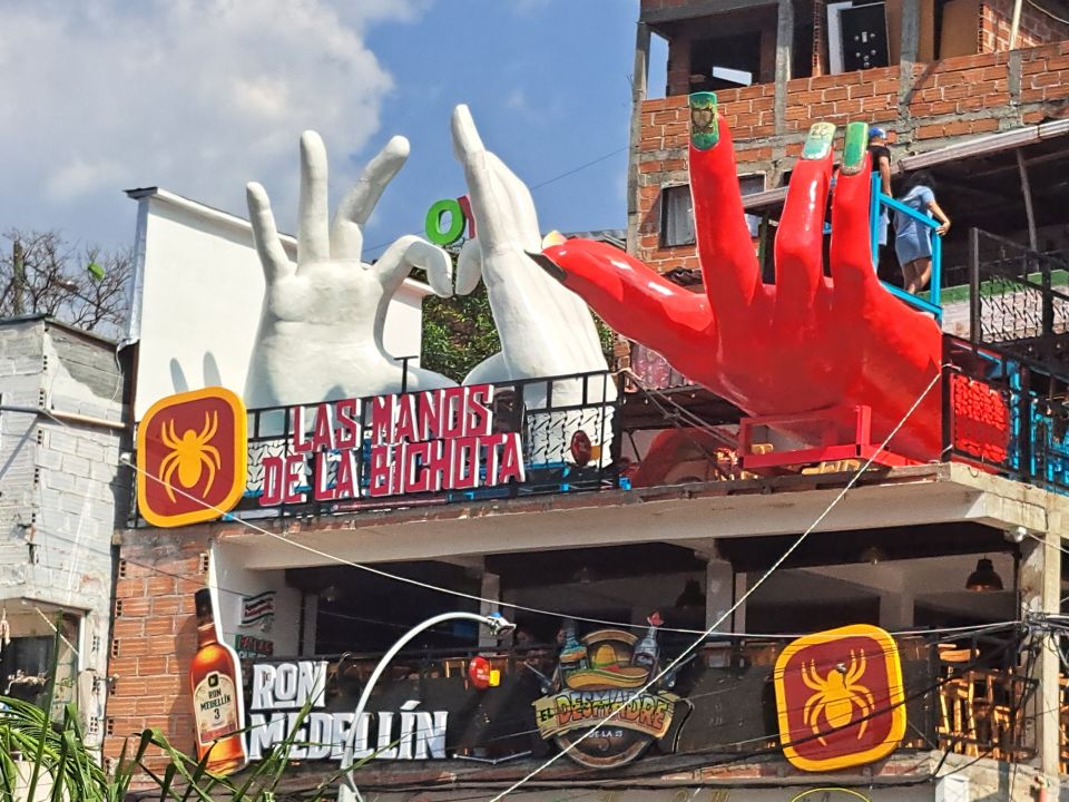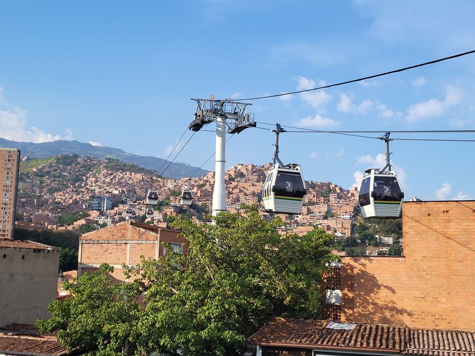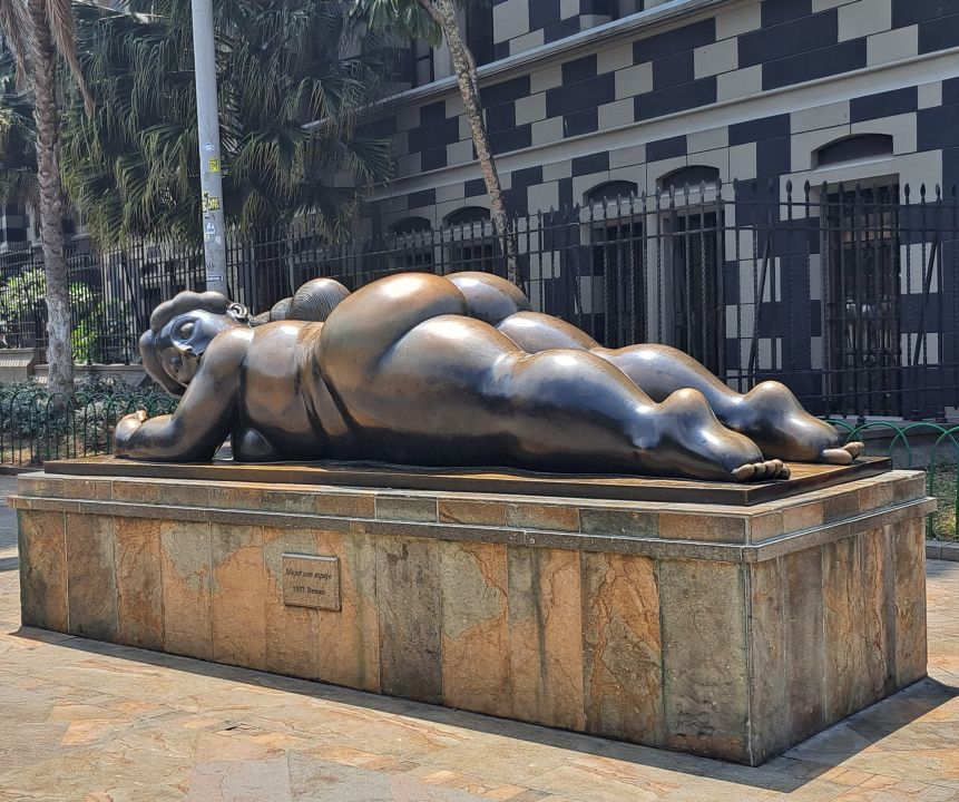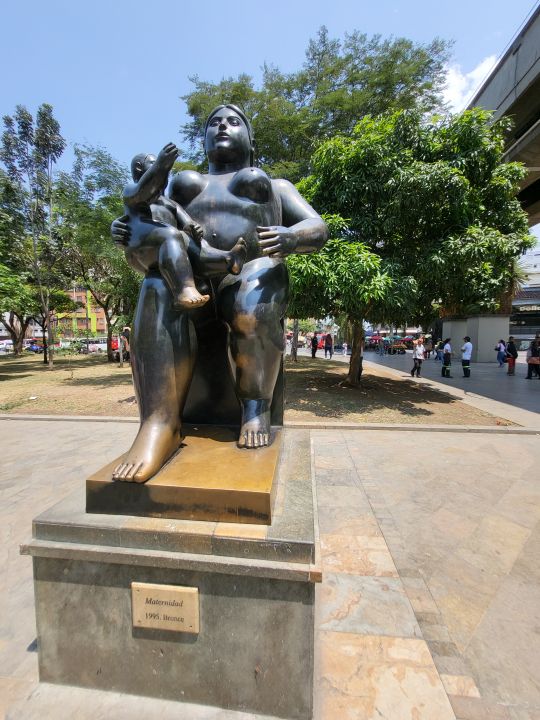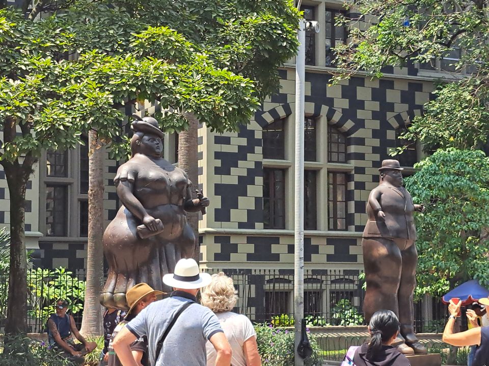 Stadtbesichtigung Medellin, mit ca. 2,6 Millionen Einwohnern 2.größte Stadt Kolumbiens. Der Bus kommt gegen 9 Uhr – bis nach Medellin dauert es eine gute Stunde. Wir fahren zuerst ein bisschen durch die Stadt – sehen das Ausgehviertel – eine Kneipe neben der nächsten, viele Restaurants etc. – hier muss abends der Bär los sein. Weiter geht es mit dem Bus durch die Stadt – wir steigen aus und gehen ein Stück zu Fuß – Fußgängerzone – Shoppingcenter mit Toilette 😂, der Botero Plaza – ein Museum vor dem 23 Bronze Skulpturen des kolumbianischen Künstlers Fernando Botero (1932 – 2023) stehen. Alle groß und dick. Es soll Glück bringen, wenn man diese Figuren anfasst. So sehen sie auch aus 😊