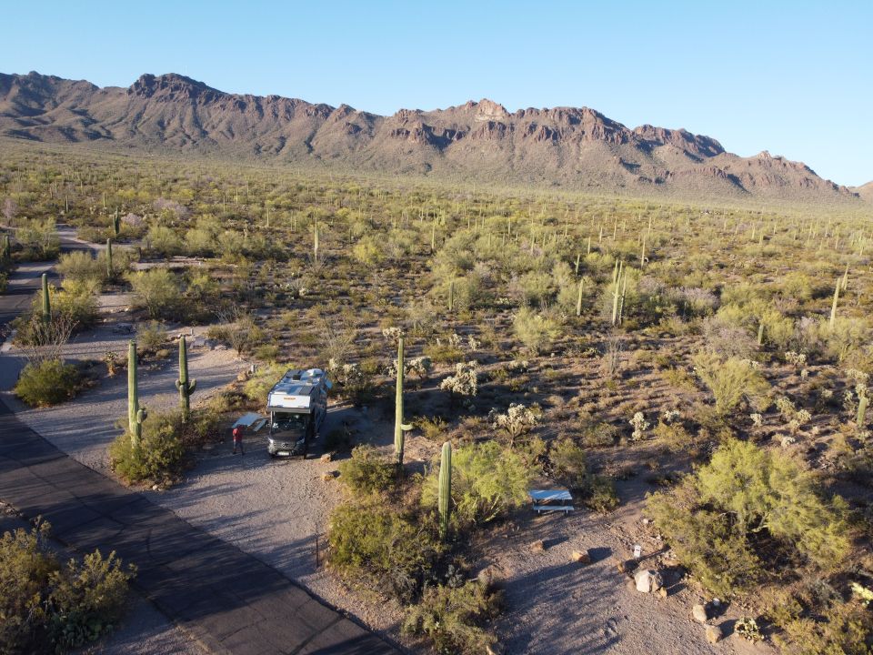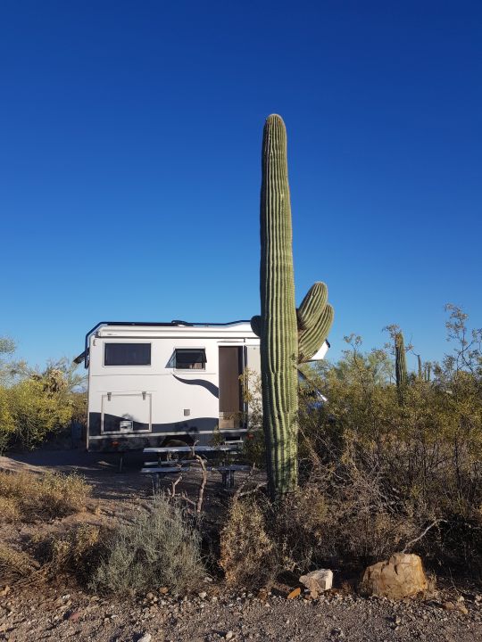 Danach fahren wir noch ein kleines Stück weiter zum ausgesuchten Übernachtungsplatz zum Saguaro NP West – Gilbert Ray Campground.