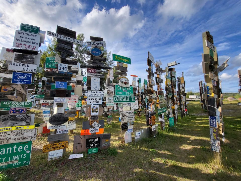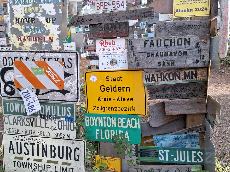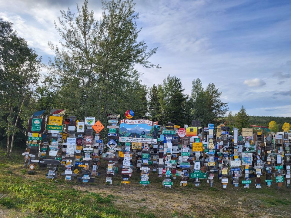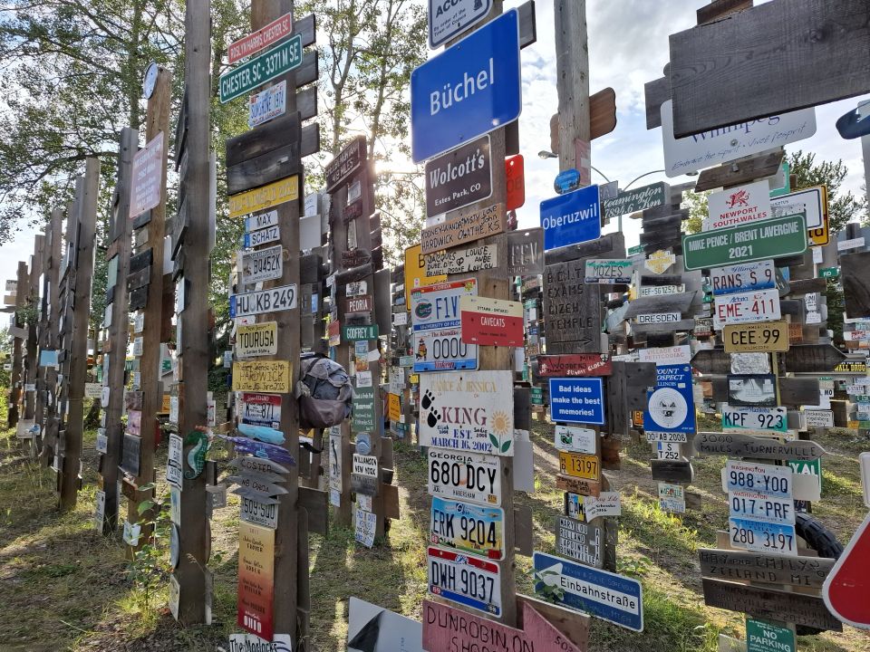 Alaska Highway arbeitete und ein Schild mit dem Namen seiner Heimatstadt und der Entfernung aufstellte. Andere folgten seinem Beispiel und die Tradition wird bis heute fortgesetzt. Mittlerweile sollen es über 100.000 sein