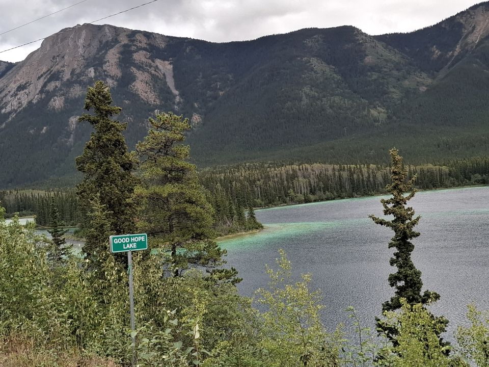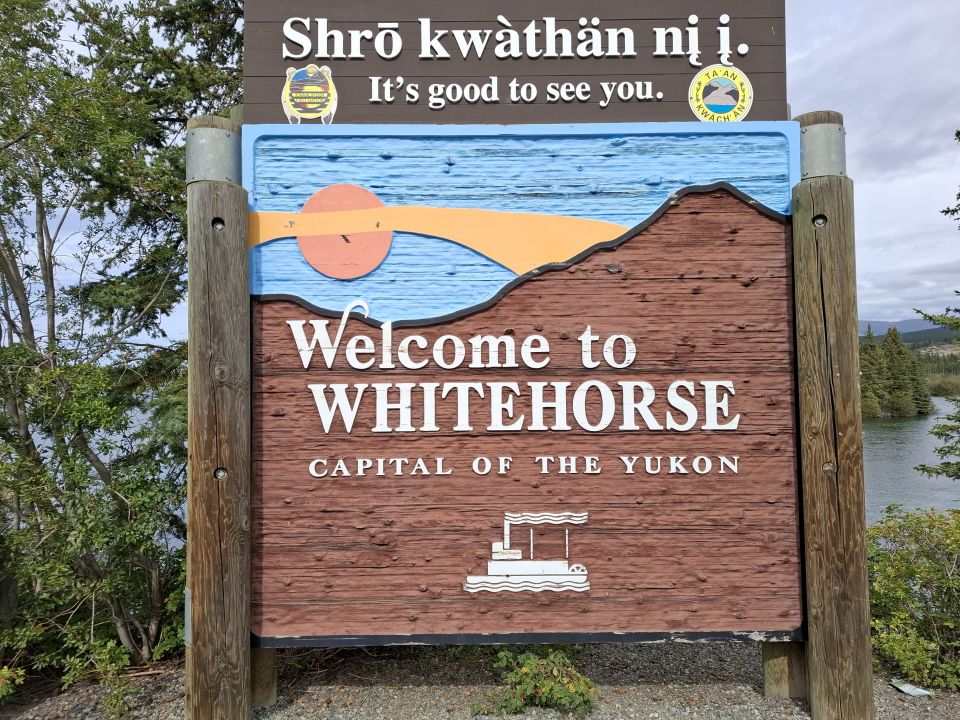 Wir kamen durch Whitehorse – Hauptstadt des Yukon-Territoriums. Whitehorse wurde benannt nach den durch den Bau eines Wasserkraftwerkes verschwundenen Stromschnellen (White Horse Rapids) des Yukon Rivers. Deren Kämme sahen aus wie die Mähnen weißer Pferde.
