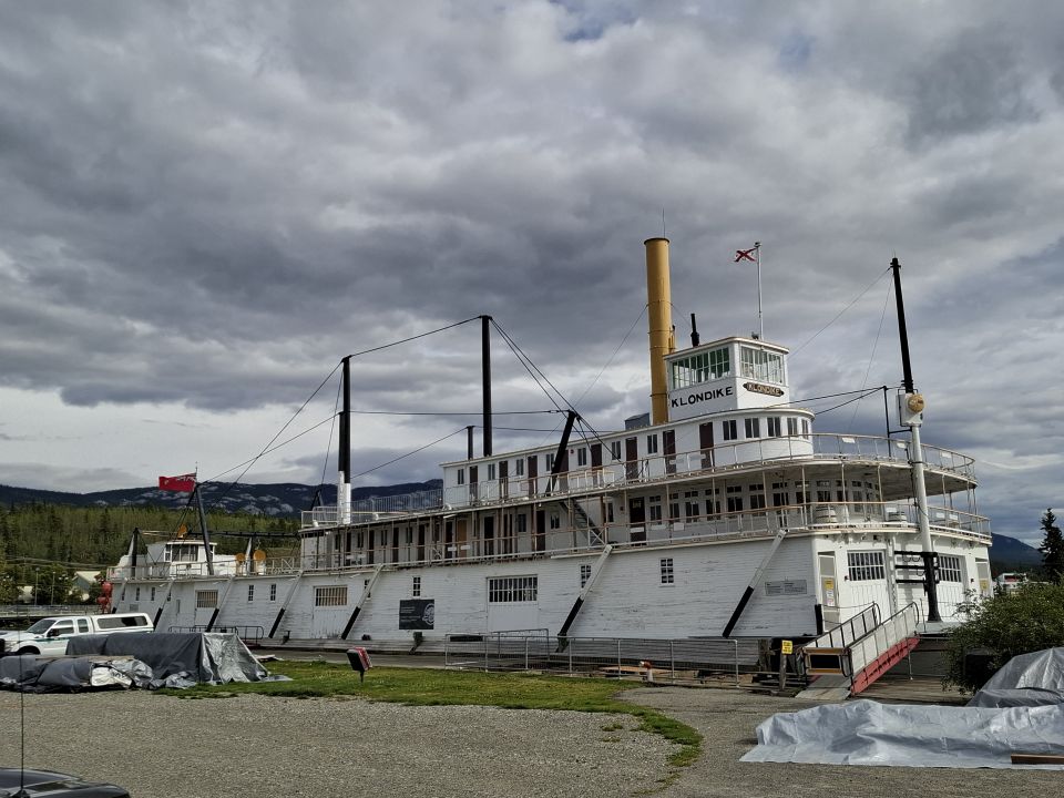 Auf dem Yukon fuhren die Raddampfer. Das einzige – noch erhaltene – Flussschiff, die S.S. Klondike fuhr auf dem Yukon River die Route Whitehorse – Dawson City (in ungefähr 36 Stunden) Eine Besichtigung war auf Grund von Reparaturarbeiten leider nicht möglich.
