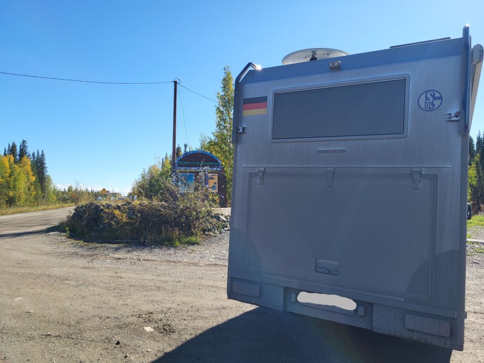 Kurz vor Dawson City geht der Dempster Highway vom Klondike Highway ab Richtung Norden. Auf dem Dempster kann man dann bis an das Nordmeer fahren. Eigentlich wollten wir den Dempster gar nicht befahen. Wir waren bereits auf der anderen Seite der Erde – in Norwegen – am Nordmeer.