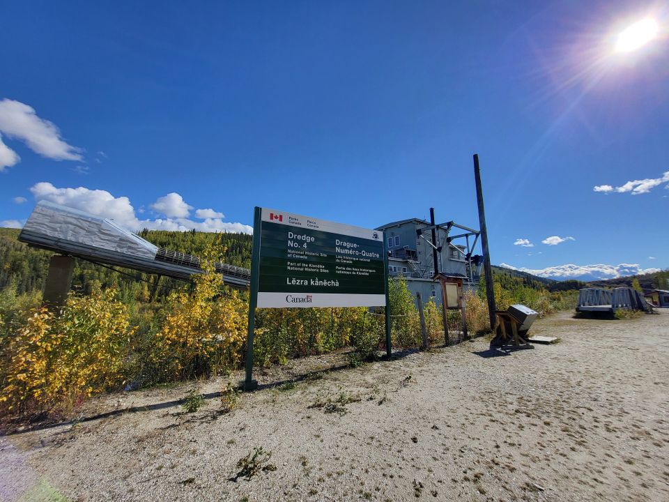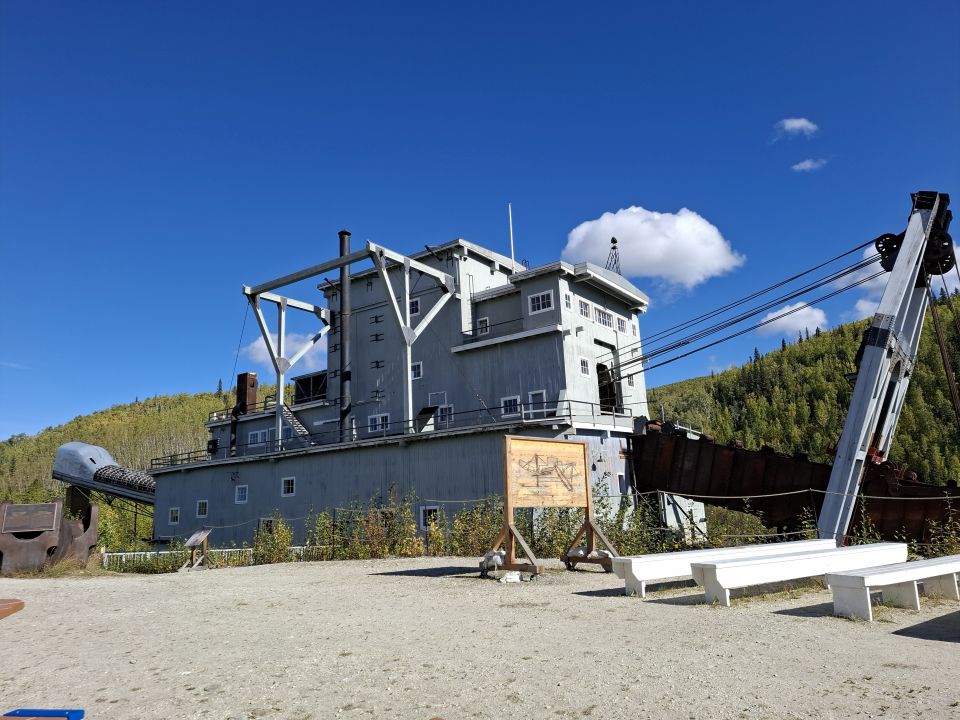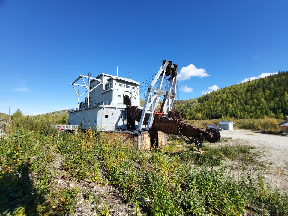 Kurz vor Dawson City schauen wir uns den dortigen alten Schwimmbagger – den Klondike Dredge Nr. 4 – an.