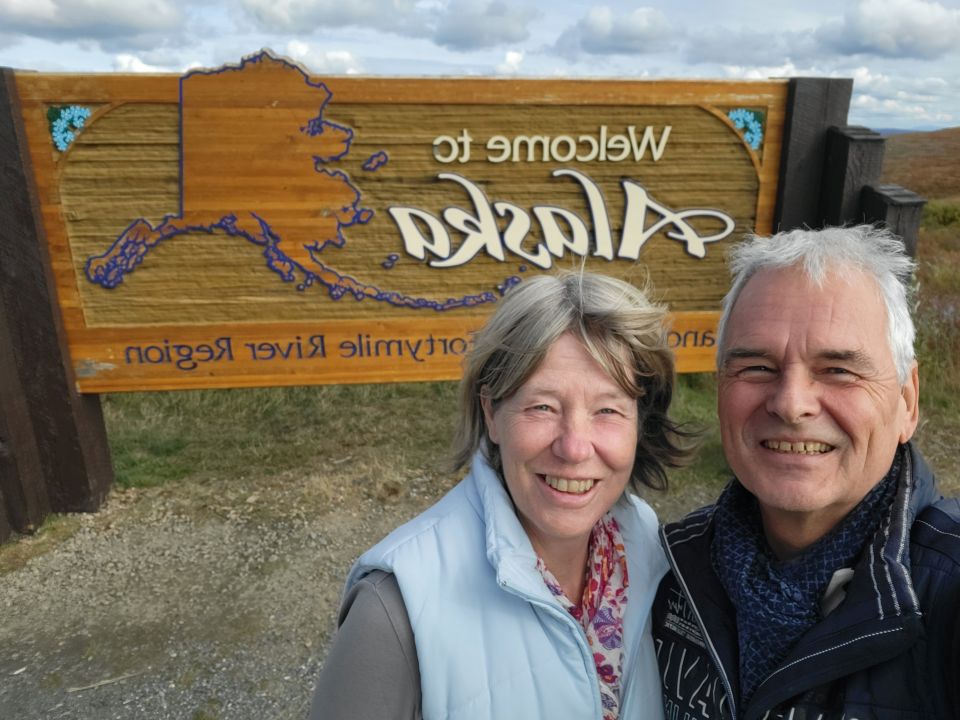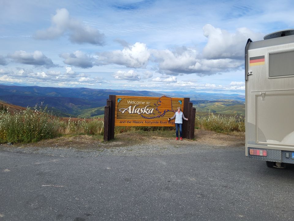 Auch an der Grenze Kanada – Alaska war es sehr einsam. Wir haben ein nettes Gespräch mit den dortigen Grenzbeamten geführt. Die Grenze ist – wegen der winterlichen Schneeverhältnisse – lediglich von Mai bis September geöffnet. Im Winter ist die Grenzstation häufig komplett schneebedeckt.