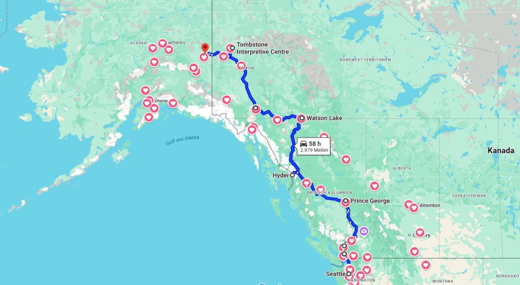 unsere Fahrtstrecke im August – Seattle / USA – Kanada – Chicken / USA