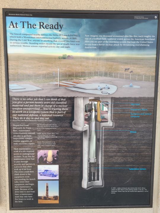 Wir verlassen den Badlands NP und besuchen die Minuteman Missile National Historic Site, eine Gedenkstätte in South Dakota, die an die Zeit des Kalten Krieges und die Rolle der Minuteman-Interkontinentalraketen erinnert. Auf Deutsch kann man sie als Minuteman-Raketen-Nationales Historisches Denkmal bezeichnen. Die Gedenkstätte umfasst ein Besucherzentrum, ein Raketensilo (Delta-09) und eine Startkontrollanlage (Delta-01)