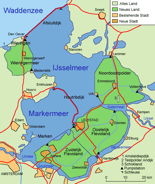 Wir machen einen Zwischenstopp mit Übernachtung in Lelystad. Von dort aus führt der Houtribdijk auch bekannt als Markerwaarddeich nach Enkhuizen. Der Deich wurde zwischen 1963 und 1976 errichtet und trennt das Ijsselmeer vom Markermeer.