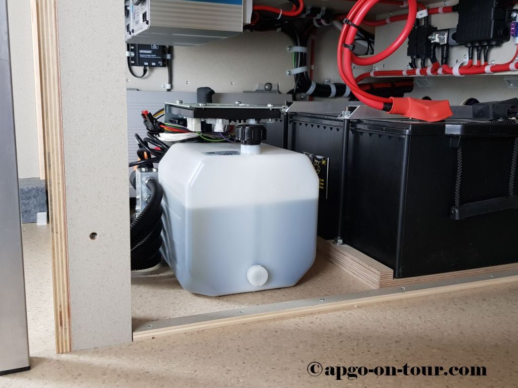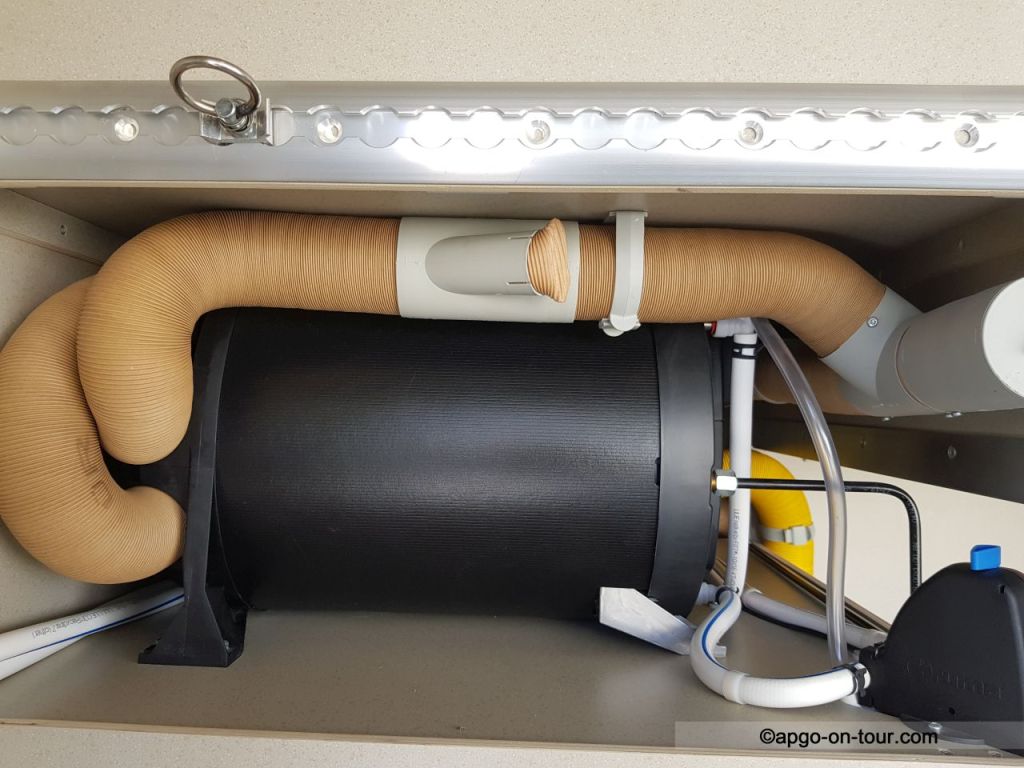 Die Autotherm konnte an den vorhandenen Truma-Heizungsschläuchen angeschlossen werden, so dass eine zusätzliche Schlauchverlegung und/oder Bohrungen für weitere Zuströmungen nicht erforderlich waren.