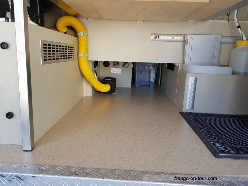 Weiterhin wurden Heizungsschläuche in den Keller – vorderer Bereich Rtg. Fahrerhaus – und in den unteren Bereich des Kleiderschrankes verlegt. Wir haben festgestellt, dass sich dort Kältebrücken befinden und sich bei niedrigen Temperaturen leichtes Schwitzwasser bildet.